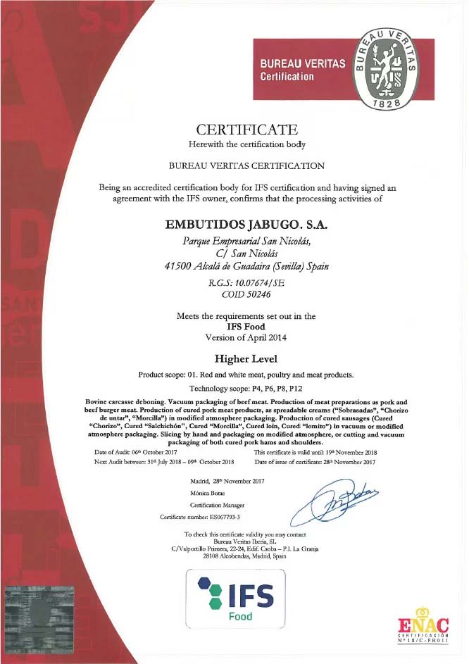 Nos enorgullece controlar la cadena de fabricación completa de nuetros productos, desde la selección de las mejores ganaderías hasta el envasado al vacío de cada hamburguesa. Nuestro compromiso con la calidad nos ha llevado a obtener la certificación IFS Food, norma de seguridad y calidad alimentaria reconocida internacionalmente por la Global Food Safety Initiative (GFSI). Esta certificación garantiza que cumplimos con los estándares más altos de seguridad alimentaria, lo que nos proporciona una clara ventaja competitiva y brinda a los consumidores la confianza en la calidad y seguridad de nuestras burgers meats.